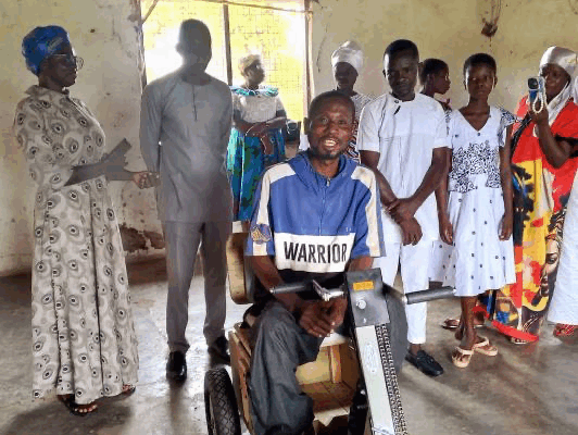 Thanks to a recent shipment to Ghana, a P.E.T. (Personal Energy Transportation) Cart was available and donated to this man so he could work again with dignity and independence.