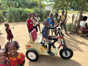 This man repairs shoes for a living. But because of his disability, his work was limited to whatever people could bring directly to him. In his village, without sidewalks or paved roads, mobility was slow and extremely difficult. Even a traditional wheelchair was of little use.