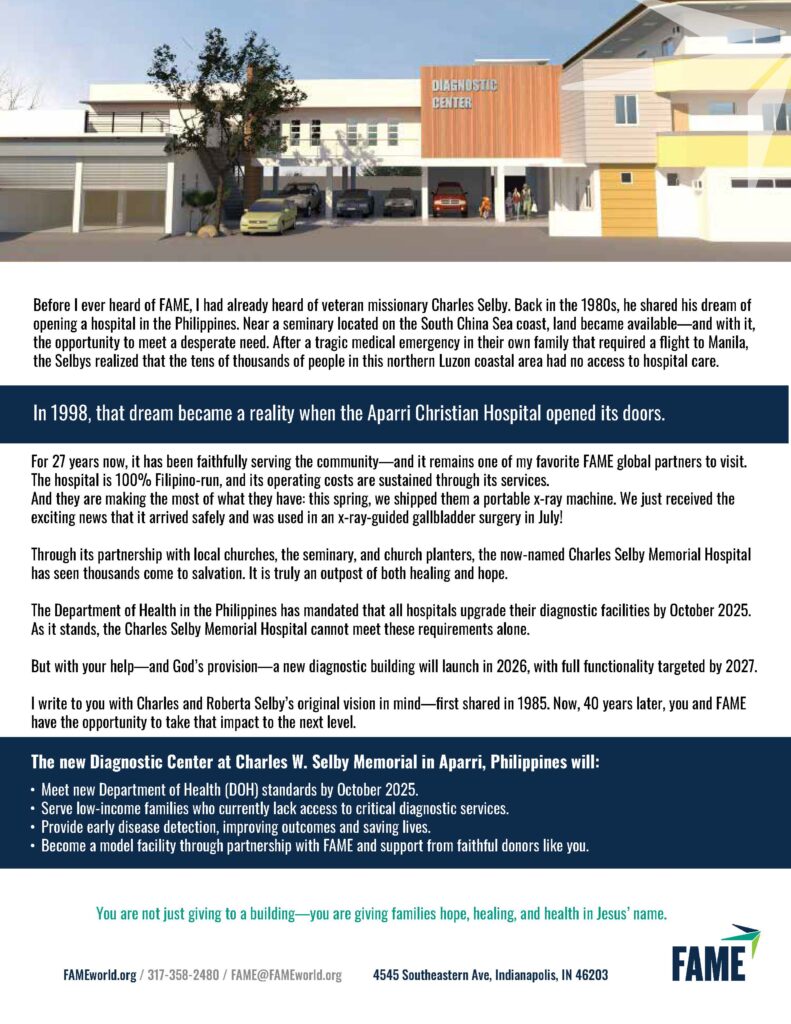 Because of people like you, FAME’s Sustainability accomplishes these things- to help provide medical care in areas where it is desperately needed.